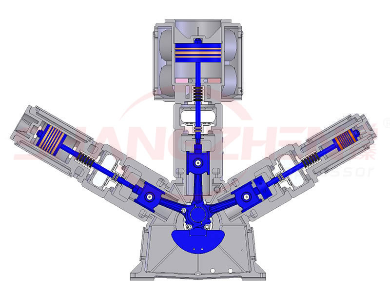 - W型三列三级压缩,效率更高,活塞力更小,占地面积更少。
